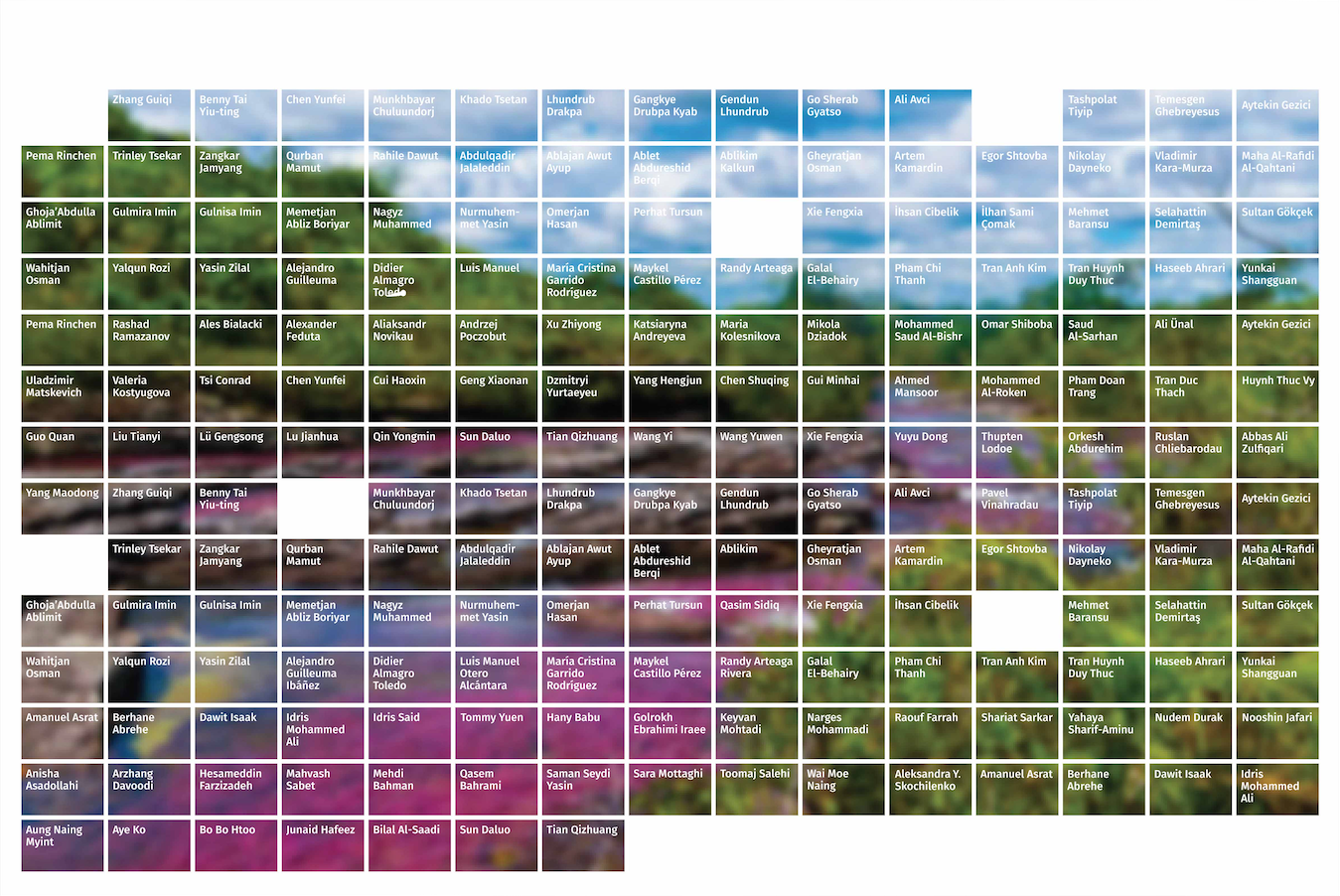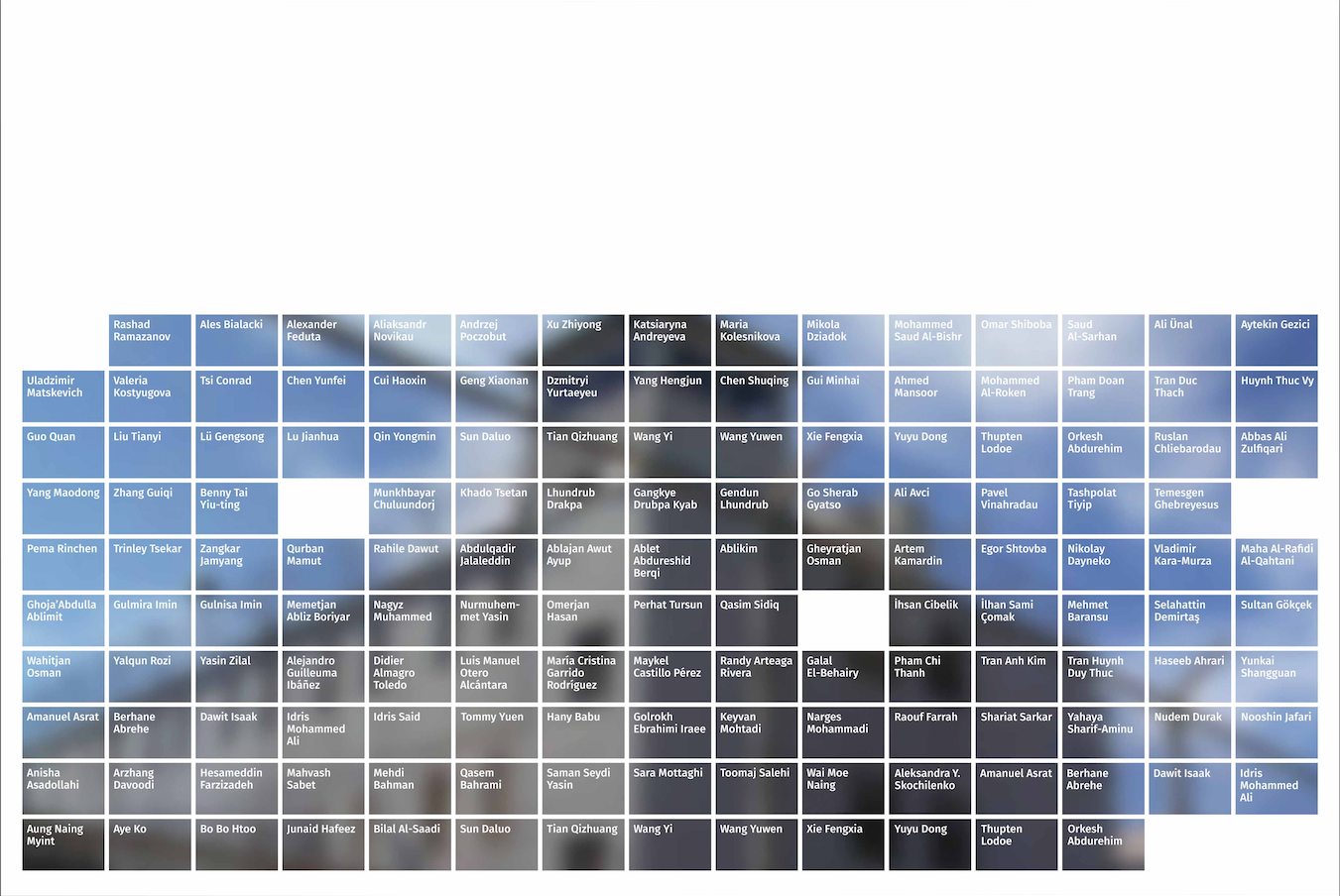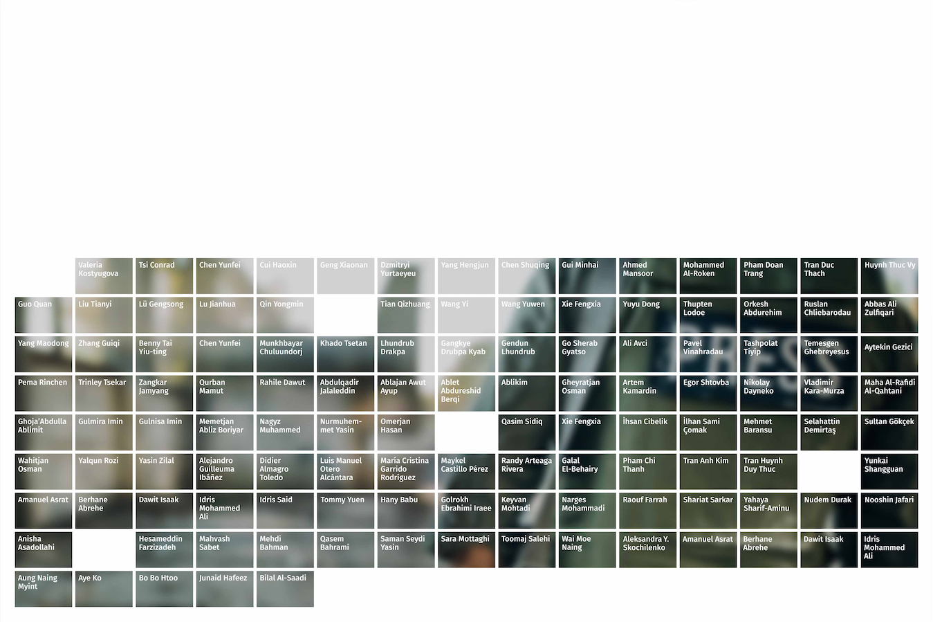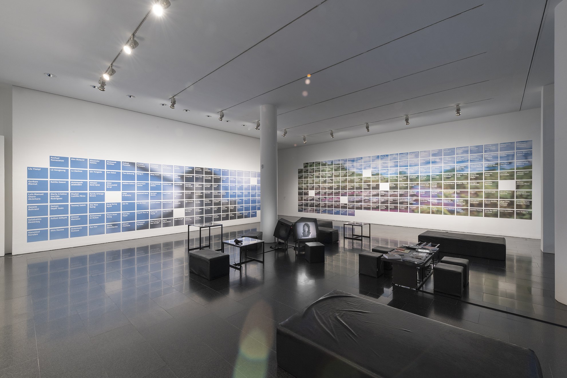 Three murals, dimensions variable, project ongoing. The project is an attempt to chart the decline of democratic values and expressive freedoms in the present day. Each mural contains the names of artists that have been imprisoned worldwide, environmental activists that have been assassinated and journalists killed at work. Created in collaboration with Loid Der.